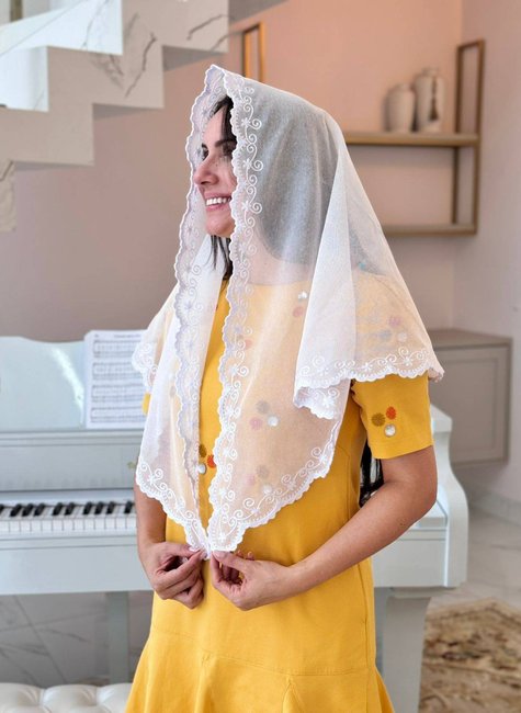 Véu Religioso Feminino CCB, na Cor Branca,Bordado no Próprio Tecido. Leve, Confortável e Com Bom Caimento
